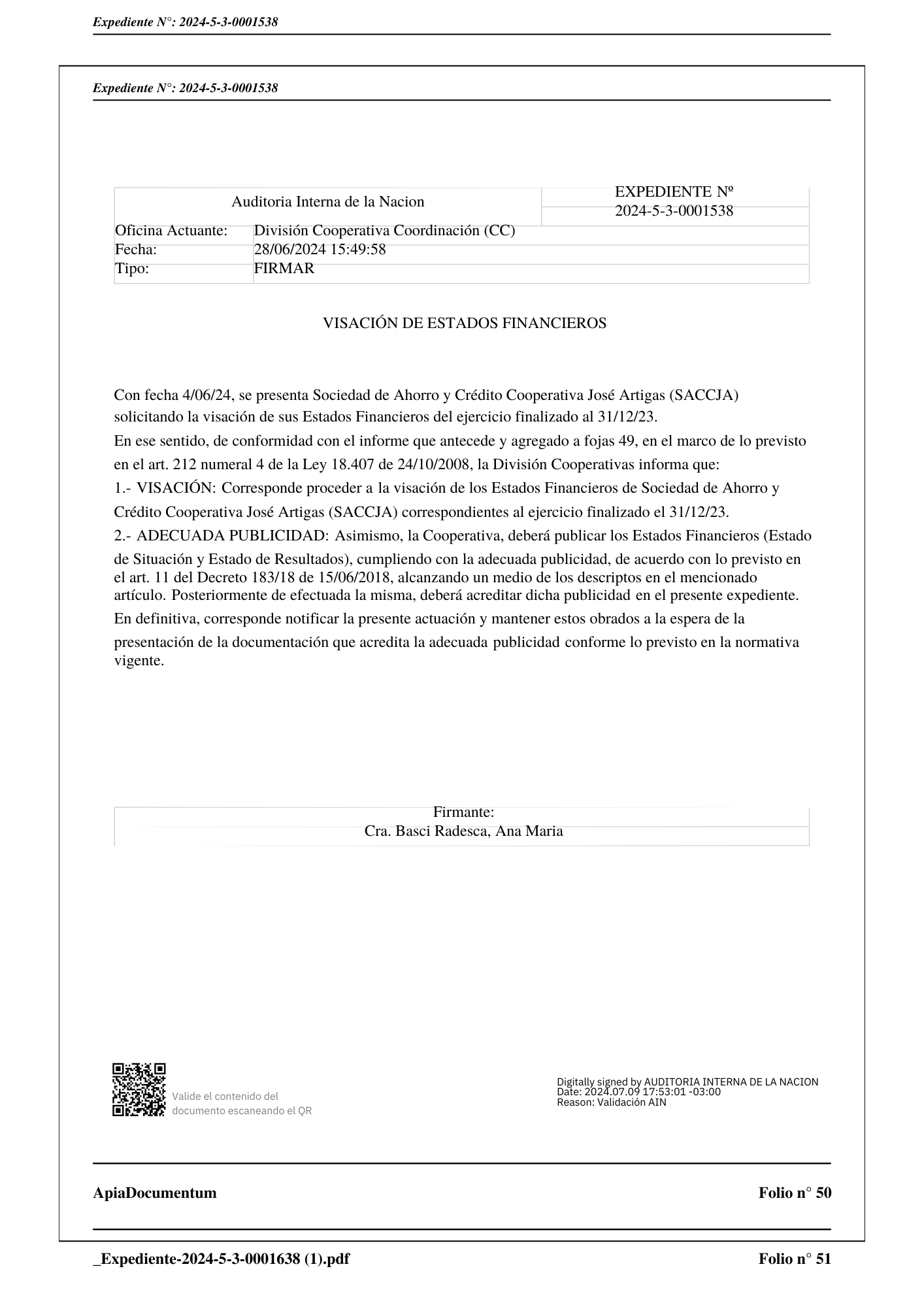 Cumpliendo con el decreto reglamentario, dejamos publicada la información correspondiente al Estado de Situación Patrimonial y Estado de Resultados 2023 visado por la Auditoría Interna de la Nación.